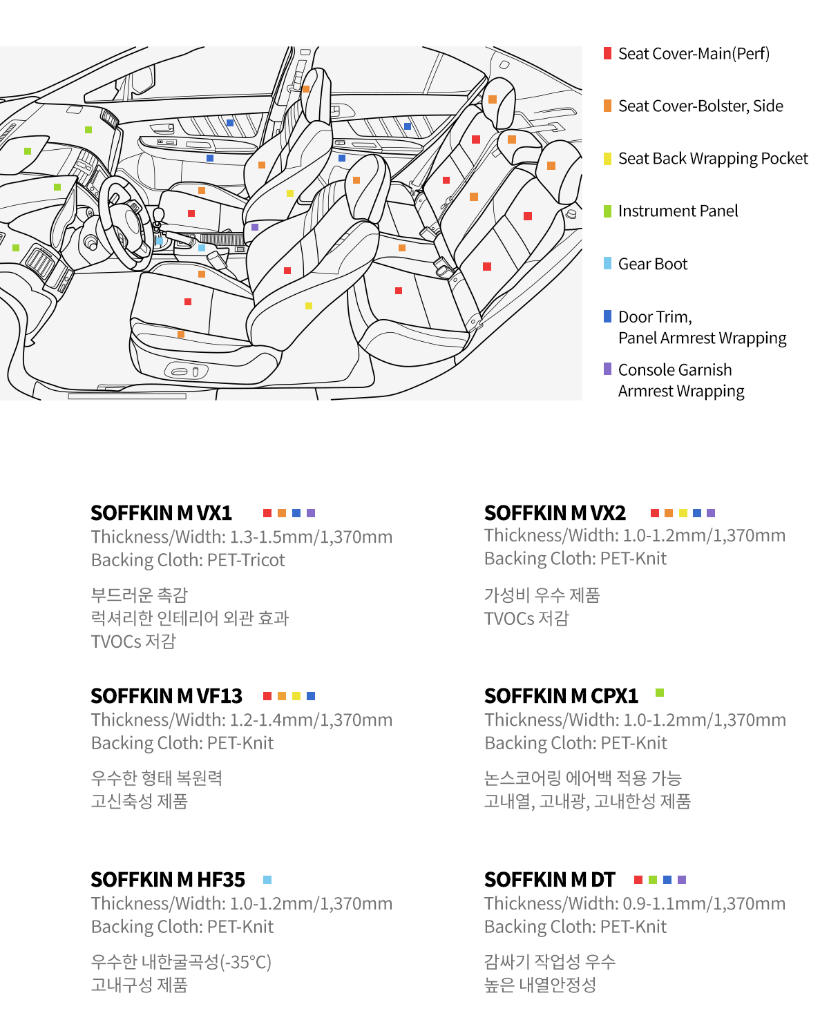 당사의 SOFFKIN 제품은 품격 있는 차량 실내인테리어를 위해