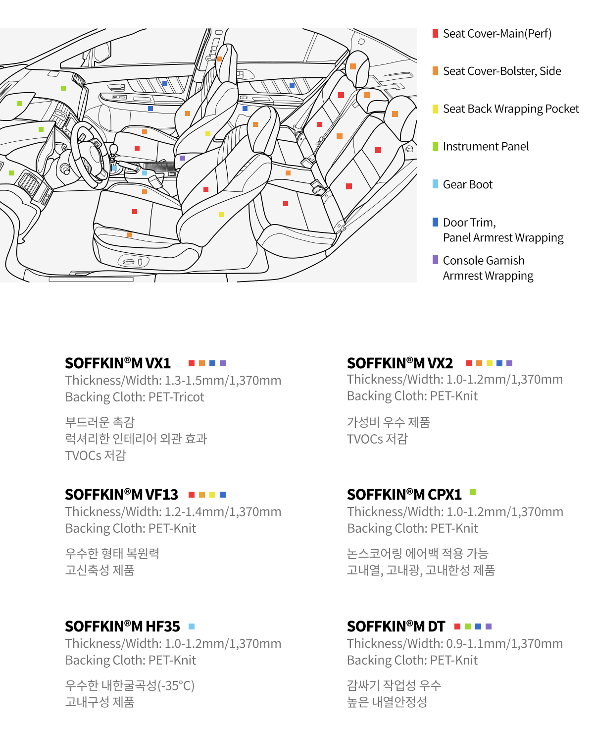 당사의 SOFFKIN®제품은 품격 있는 차량 실내인테리어를 위해